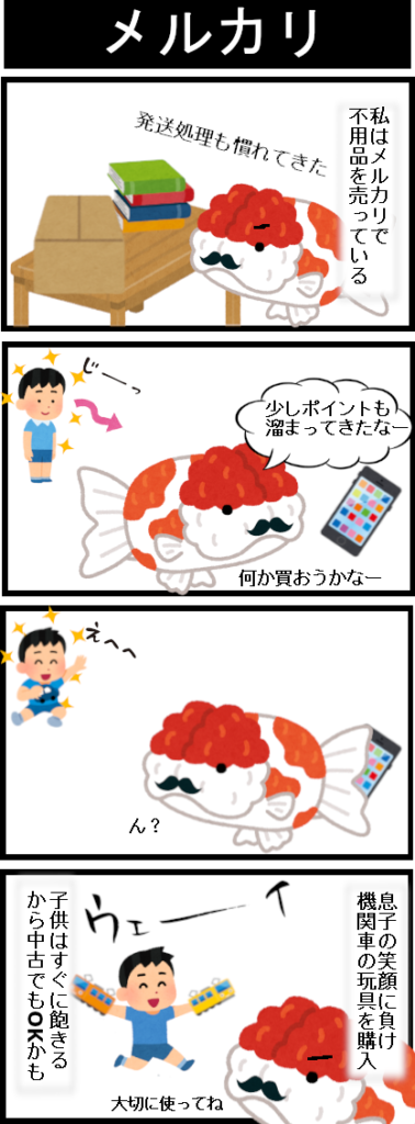 メルカリでは、子供達の使われなくなったおもちゃが売ってます。