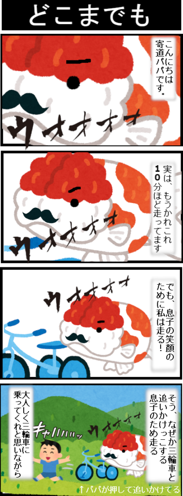 ・なぜか、パパの押す三輪車に追いかけられる ← NEW