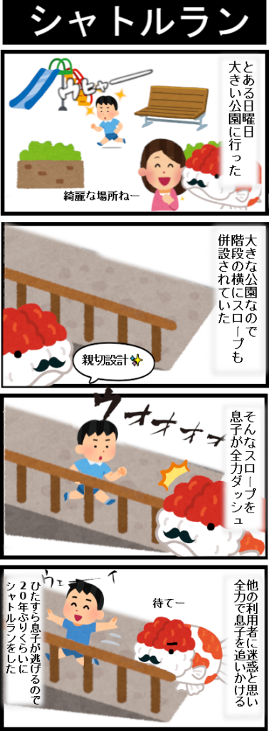 その結果、息子の暴走を止めるために親もダッシュして止めようとする。