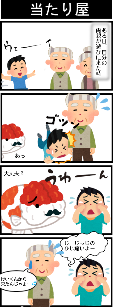 その結果、じいじの肘に自分からぶつかって、痛い思いをしてしまいました。