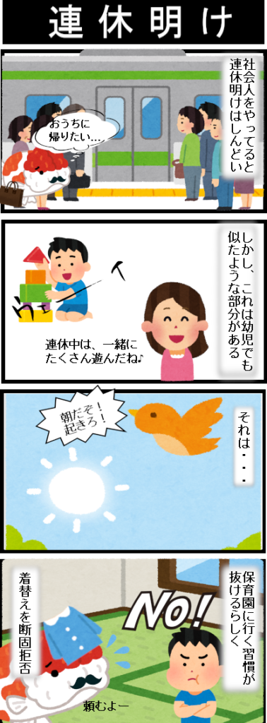 しかし、子どもも同じ。連休で楽しいこともあったのか、保育園に行きたくなくなる時があります。