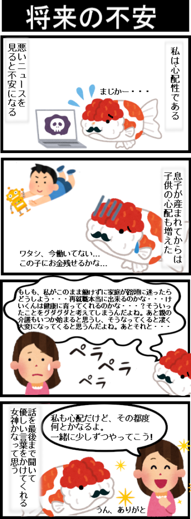 寄道うつパパ日記「将来の不安」 2021年10月31日 最終更新日時 : 2022年3月31日 yorimichi 妻には、本当に助けられています。 最後まで話を聞き、しっかりと話付き合ってくれる。 自分にはもったいない奥さんだと思います。 Twitterでも配信してます @yorimichi_tnk FacebookXHatenaPocketCopy