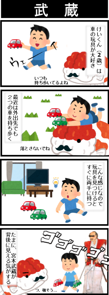寄道うつパパ日記「武蔵」 2021年10月31日 最終更新日時 : 2022年3月31日 yorimichi なぜ、背後に宮本武蔵が見えるのか。 それはおもちゃを使った親父への暴力(遊び)のイメージが刷り込まれているのかもしれない。。。 精神的に完全に屈服しているのかもしれません。 Twitterでも配信してます @yorimichi_tnk FacebookXHatenaPocketCopy